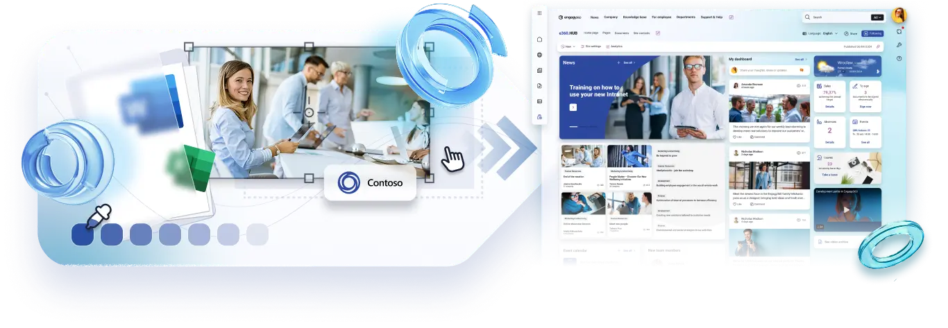 - Native integration with your Microsoft 365 ecosystem. You can connect seamlessly with SharePoint, Teams, and the full Microsoft 365 suite, making your intranet a natural part of your digital workplace.