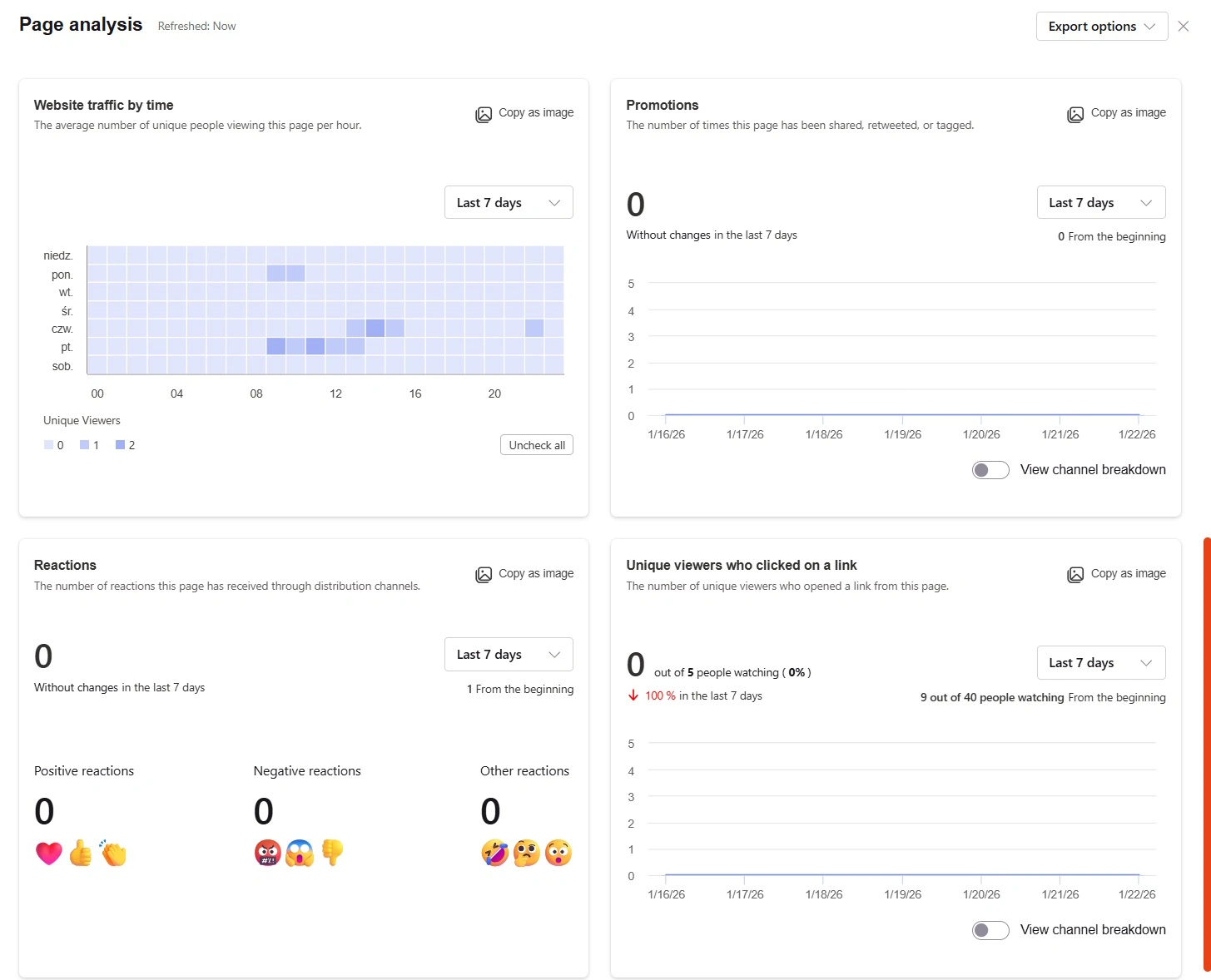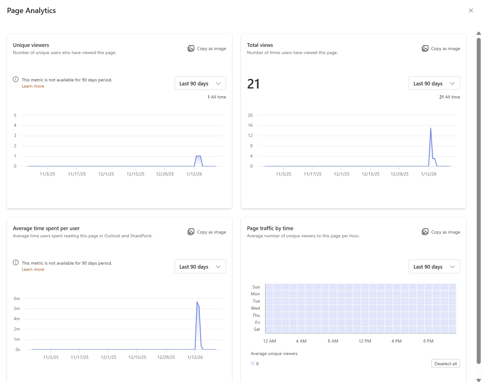 ⚠️ Note: As for January 2026, the most extended page analytics periods are not working yet. The new page analytics has been rolling out since September 2025, and none of the articles had enough time to gather sufficient data.