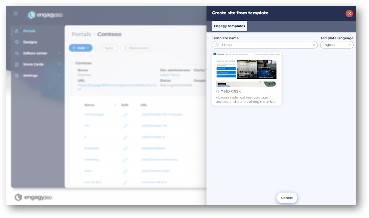 Empower business units to spin up new SharePoint sites without IT assistance using Engagy360 Self-Service Site Creation. Guided templates, ranging from project and team workspaces to document repositories, ensure brand consistency and governance compliance. Site owners can finalize the configuration and define permissions before the go-live.